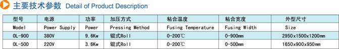 使用范围: NHG-900适合面料衣片衬布的粘合,也可转移印花烫金,服装下栏压光定型,本机采用加热传送达到效果,一机多用是一款理想产品 ,公司规格齐全有:900 1000 1200 1500 1600 1800 2000等宽度,功能可根据客户的要求定制变频调速(加快粘合的速度,提高产量)也可定制加热区加长,下带延长、配有自动调节带子的走偏(调偏感应器采用欧姆龙,性能稳定,使用寿命长,终生享用)机器性能特点:■连续作业,速度快。■粘合牢固、平整、不起邹、耐洗涤。■温度可调(0-200°),自动控温,分上下加热区,可分别温度压力可调(有机械调节压力和气压可选)压力可达5公斤豪华落地款:配有电机自动调带装置,前后温度可控,压力大于简易款,是大型企业的选择
